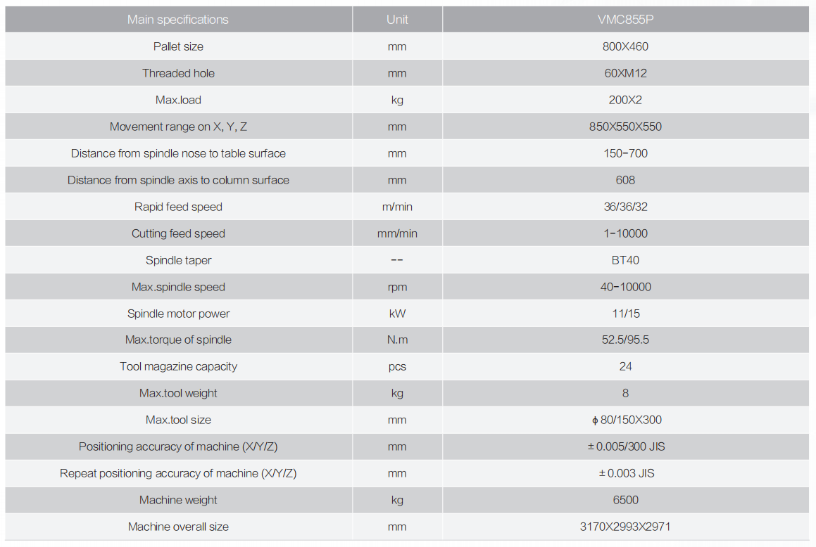 VMC855P double positions vertical machining center